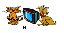 The TV is ... the cat and the dog.