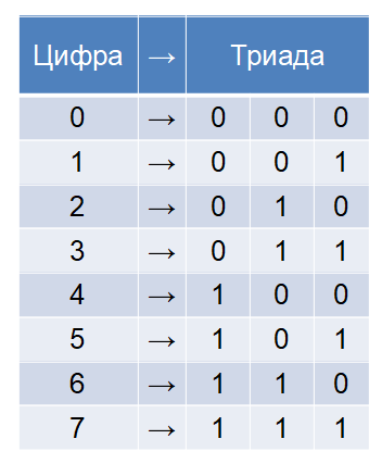 Переведите число 71 из восьмеричной системы счисления в двоичную.