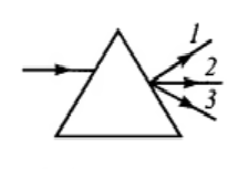 На рисунке изображена стеклянная треугольная призма, находящаяся в воздухе. Какой цифрой обозначен луч, выходящий из призмы?