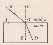 На рисунке показан переход светового луча из воздуха в воду. Углом падения луча является угол