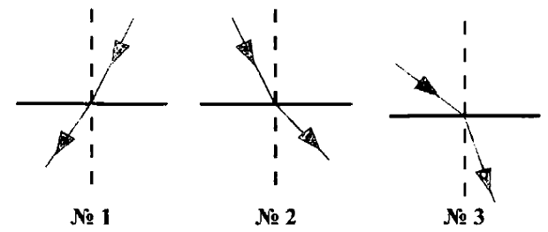 На каком рисунке изображен переход светового луча в оптически менее плотную среду?