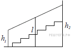 №3.Перила лестницы дачного дома для надёжности укреплены посередине вертикальным столбом. Найдите высоту l этого столба, если наименьшая высота h1 перил относительно земли равна 1 м, а наибольшая h2 равна 2 м. Ответ дайте в метрах.