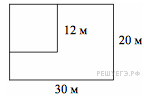 №8.Дачный участок имеет форму прямоугольника со сторонами 30 метров и 20 метров. Хозяин отгородил на участке квадратный вольер со стороной 12 метров (см. рис.). Найдите площадь оставшейся части участка. Ответ дайте в квадратных метрах.