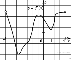 На рисунке изображён график производной функции, определённой на интервале (-7; 4). Определите количество промежутков возрастания функции: