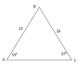 Дан треугольник АВС. АВ=13 см, ВС=18 см, <А=53о, <С=37о. Найдите сторону АС. Ответ округлите до сотых.