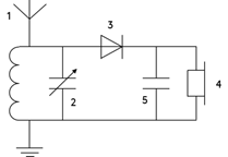 На рисунке изображена схема детекторного радиоприёмника. С помощью какого элемента радиоприемника производится его настройка на определенную частоту радиоволны?