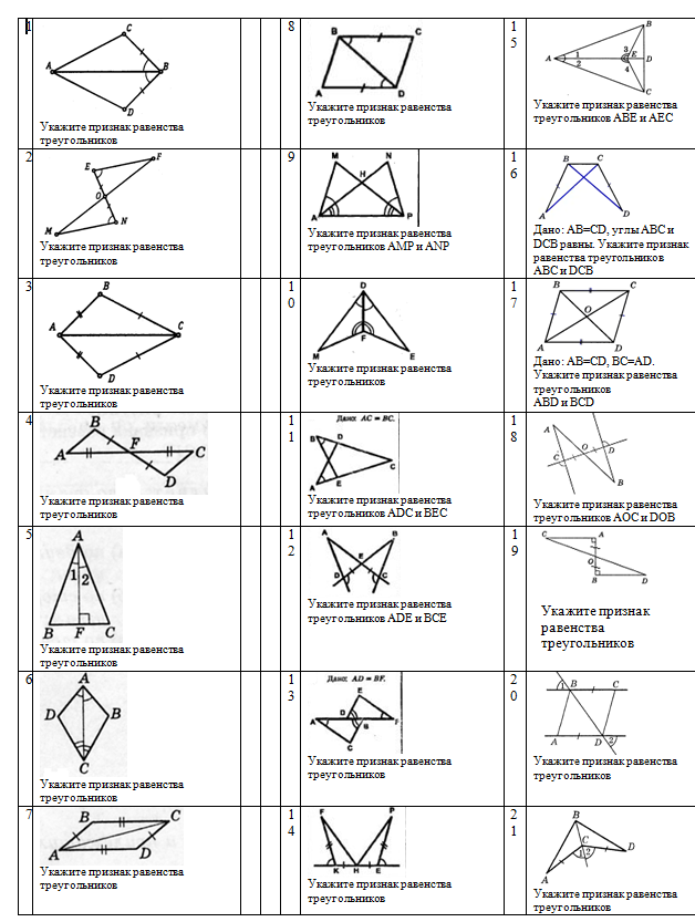 Признаки равенства треугольников