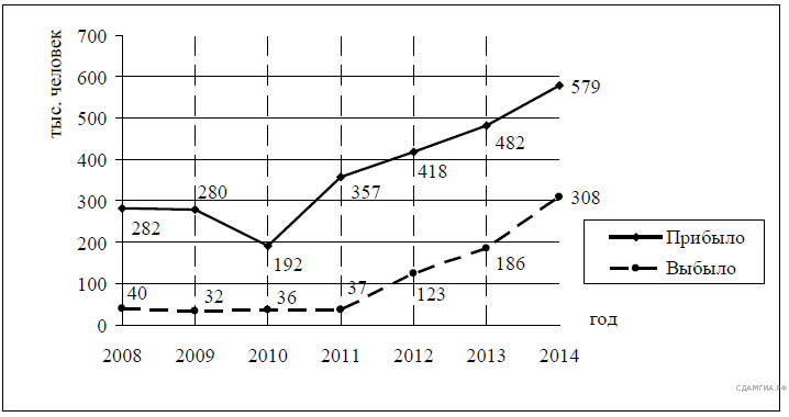 23. Определите величину миграционного прироста населения России в 2014 году. Ответ запишите в виде числа.