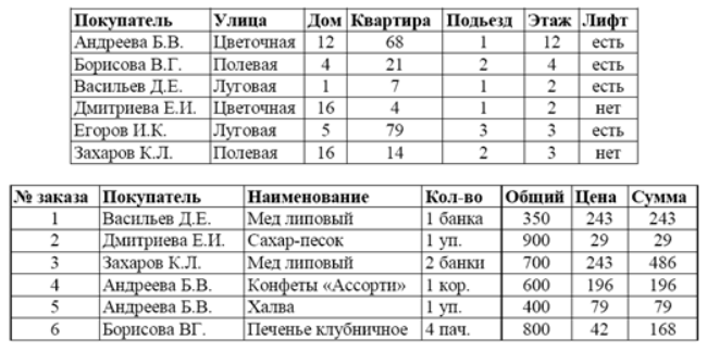 База данных службы доставки состоит из двух связанных таблиц:
