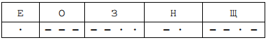 Определите текст радиограммы. В ответе укажите буквы, которые встречаются в тексте радиограммы более одного раза.