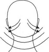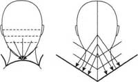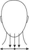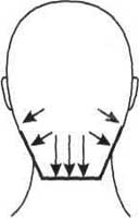 - г) от краевой линии роста волос на шеи к краевой линии роста волос на лбу.