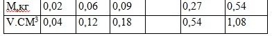 Исследовали зависимость массы вещества от его объема. При заполнении таблицы оказалось, что один результат измерения затерялся. Какую пару цифр вы добавили бы в таблицу?