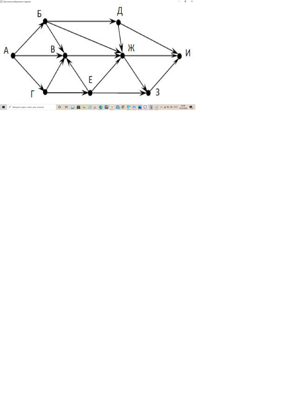 На рисунке - схема дорог, связывающих города А, Б, В, Г, Д, Е, Ж, З, И. По каждой дороге можно двигаться только в одном направлении, указанном стрелкой. Сколько существует различных путей из города А в город И?
