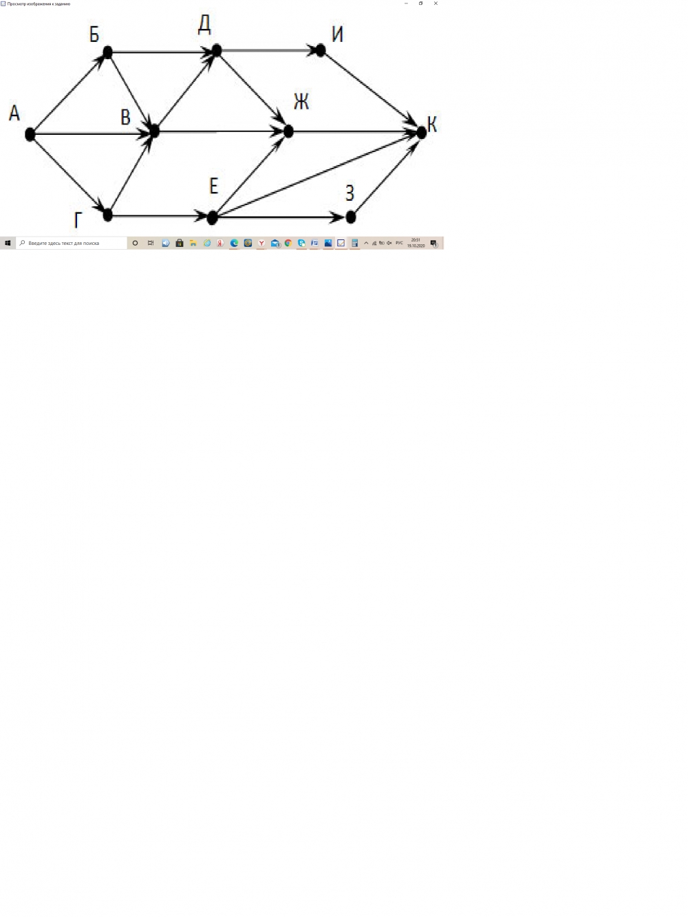 На рисунке - схема дорог, связывающих города А, Б, В, Г, Д, Е, Ж, З, И, К. По каждой дороге можно двигаться только в одном направлении, указанном стрелкой. Сколько существует различных путей из города А в город К?