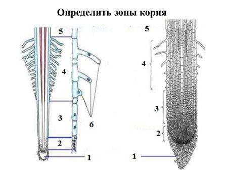 Установите соответствие между ЗОНАМИ корня и их ФУНКЦИЯМИ.