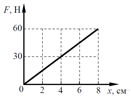 На рисунке представлен график зависимости модуля силы упругости от удлинения пружины. Какова жёсткость пружины? (Ответ дайте в Н/м.)