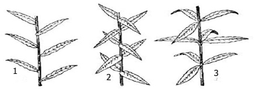 Как называется изображенные на рисунке листорасположения, указанные под буквами, 1, 2, 3?