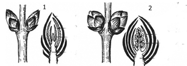 Какие почки указаны цифрами 1 и 2