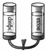 Резиновая трубка, соединяющая сосуды, перекрыта зажимом. Что произойдёт с жидкостями, когда зажим будет снят?