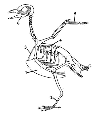 Установите соответствие между характеристиками и структурами скелета птицы, обозначенными цифрами 1, 2, 5 на рисунке. Запишите указанные цифры в порядке, соответствующем буквам.