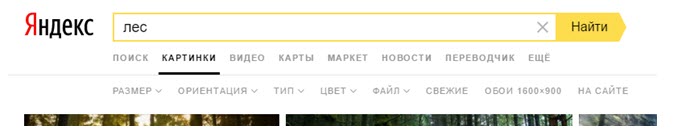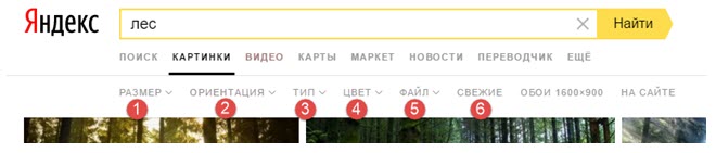 Укажите номер пункта в поисковой системе Яндекс, с помощью которого можно найти картинки в горизонтальном отображении.