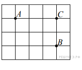 На клетчатой бумаге с размером клетки 1 × 1 отмечены точки А, В и С. Найдите сумму углов ABC и CAB. Ответ дайте в градусах.
