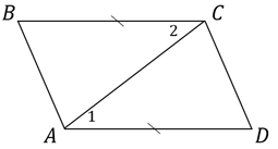 На рисунке: AD = BC, угол 1 равен углу 2. Будут ли равны треугольники ABC и CDA.
