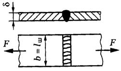 В изображенном сварном соединении сила F=48 кН, толщина соединяемых листов δ=8мм. Материал деталей соединения – сталь Ст4. Допускаемое напряжения в шве [σр]=150 МПа. Минимальная длина сварного шва равна …