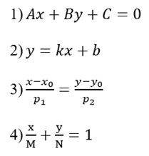 Различные виды уравнений прямой на плоскости