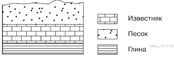 Расположите показанные на рисунке слои горных пород в порядке увеличения их возраста (от самого молодого до самого древнего). Запишите в ответ получившуюся последовательность букв.