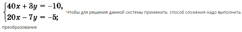 Какое преобразование необходимо выполнить, чтобы можно было решить эту систему способом сложения?