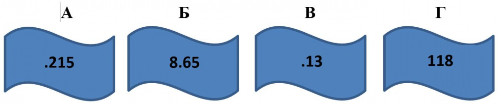 Петя записал IP-адрес школьного сервера на листке бумаги и положил его в карман куртки. Петина мама случайно постирала куртку вместе с запиской. После стирки Петя обнаружил в кармане четыре обрывка с фрагментами IP-адреса. Эти фрагменты обозначены буквами А, Б, В, Г. Восстановите IP-адрес. В ответе укажите последовательность букв, обозначающих фрагменты, в порядке, соответствующем IP-адресу.