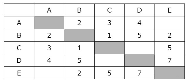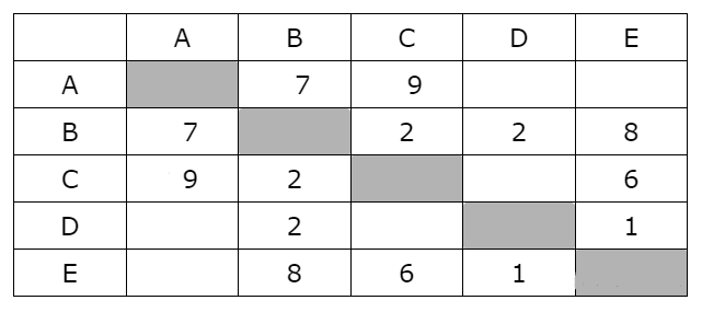 Определите длину кратчайшего пути между пунктами A и Е через С. Передвигаться можно только по дорогам, указанным в таблице.