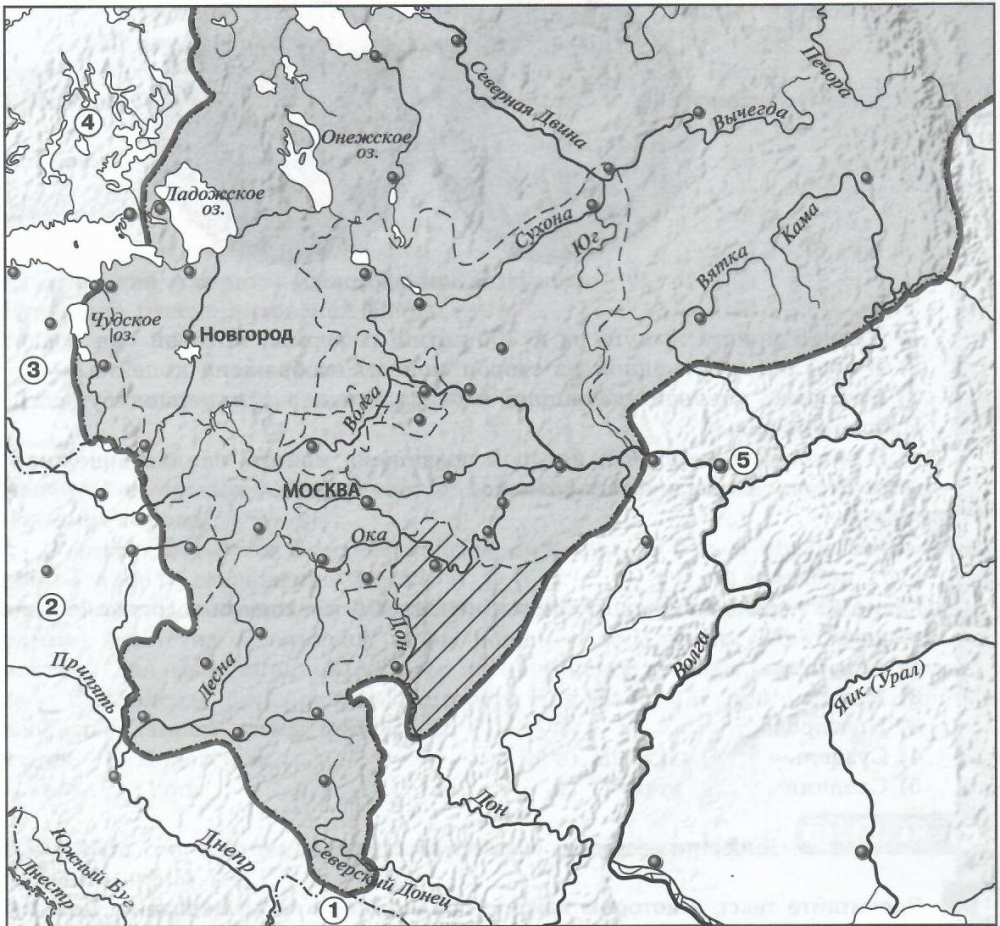Укажите год, когда к Российскому государству была присоединена территория, выделенная на карте штриховкой.