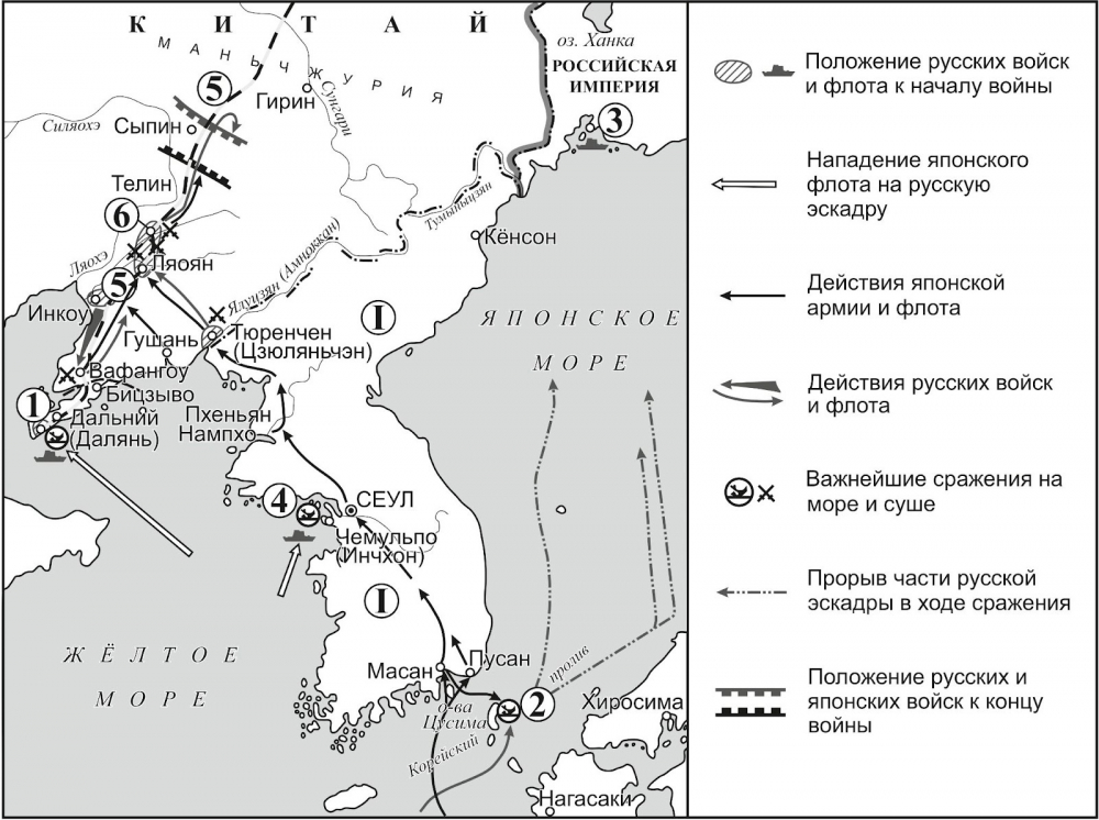 - В сражении, обозначенном на схеме цифрой "2", русской эскадрой командовал адмирал Рожественский