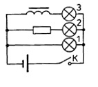 На рисунке представлена электрическая схема. В какой лампе после замыкания ключа сила тока позже достигнет своего максимального значения?