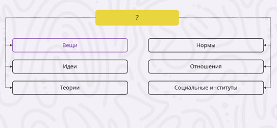 - Это мир социальных и личностных ценностей: идеалы искусства, нормы нравственности, философские учения, политические убеждения, религиозные верования.