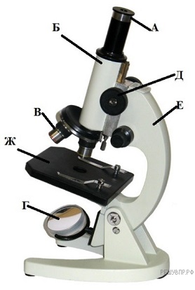 Рассмотрите изображение микроскопа. Что обозначено на рисунке буквой В?
