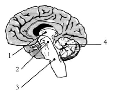 У человека центры слюноотделения находятся в отделе мозга, обозначенном на рисунке цифрой: