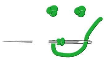 - Отступив в сторону на нужное расстояние, иглу опять выводят на поверхность и выполняют очередной узелок.