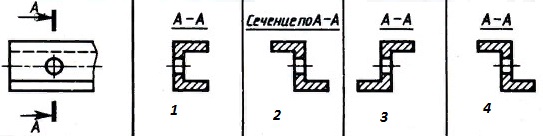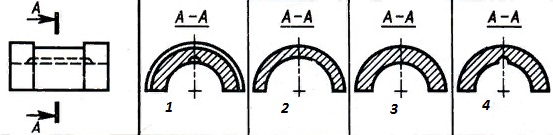 Даны четыре вынесенных сечения, являющихся вариантами ответов. назовите номер правильного ответа
