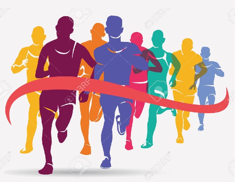 Дистанцию по бегу спортсмен в форме синего цвета преодолел за 22 с, а спортсмен в форме красного цвета - за 24 с. Кто из них быстрее добежал до финишной черты?