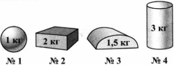 На какое из показанных на рисунке тел действует наибольшая сила тяжести?