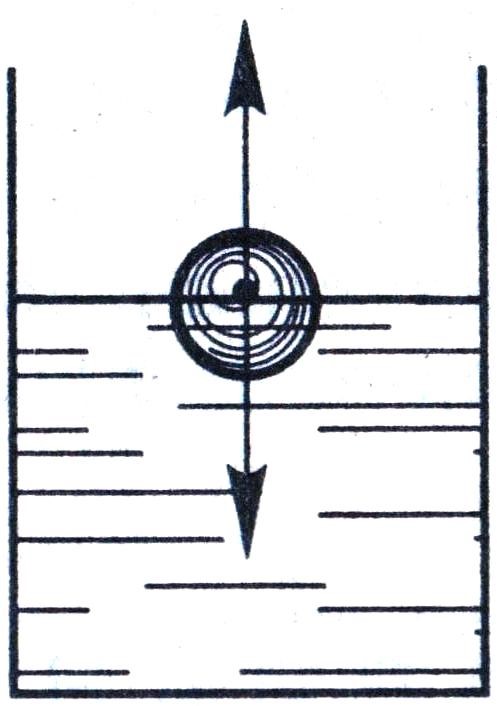 На рисунке изображены силы, действующие на шар, плавающий в воде. Дайте название каждой из сил.