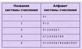 Правильно сопоставьте названия систем счисления и их алфавиты.