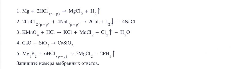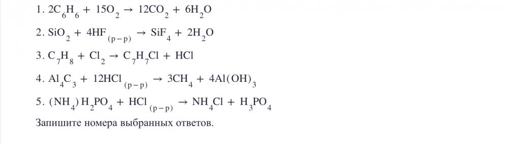 Из предложенного перечня выберите все реакции, для которых как увеличение концентрации реагентов, так и увеличение давления приводит к увеличению скорости реакции.