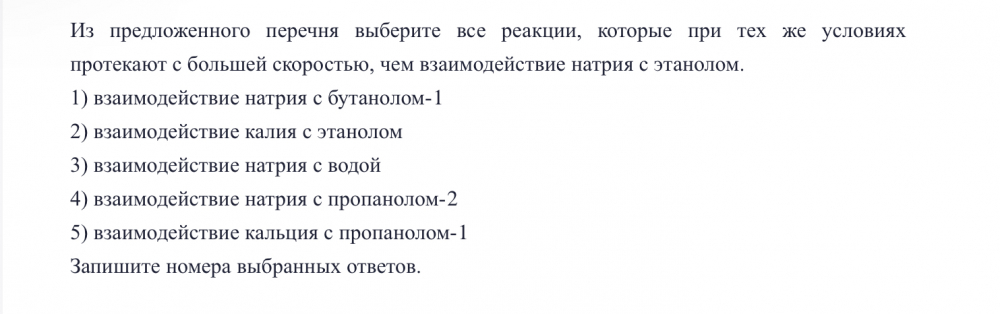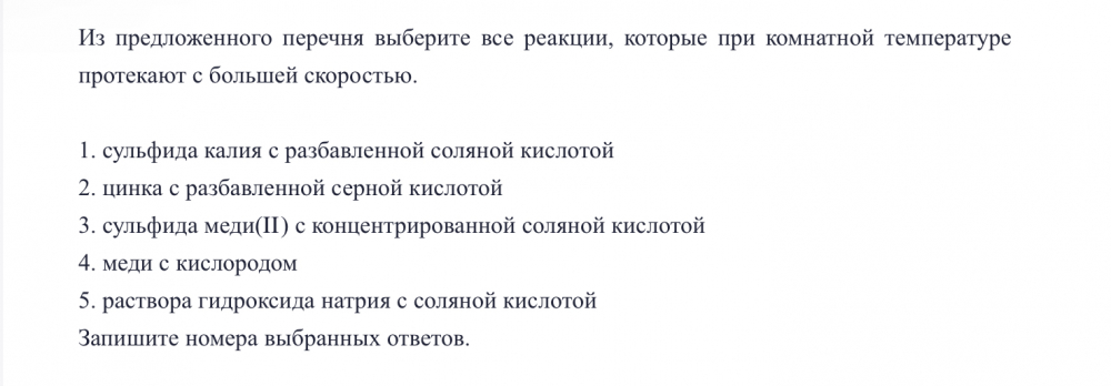 Из предложенного перечня выберите все реакции, скорость которых ниже, чем скорость реакции гранул кальция с водой.