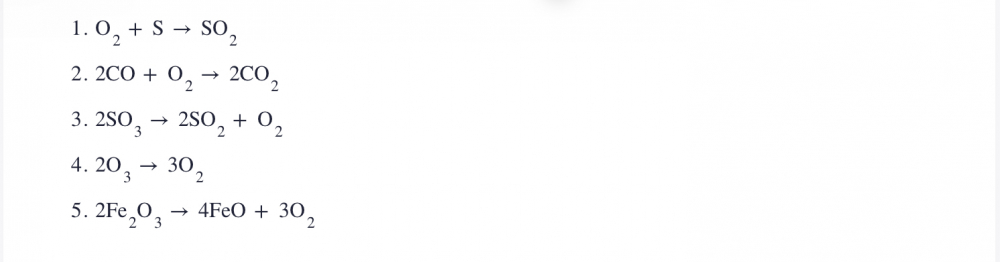 Из предложенного перечня выберите все реакции, для которых увеличение концентрации кислорода приведёт к увеличению скорости реакции.
