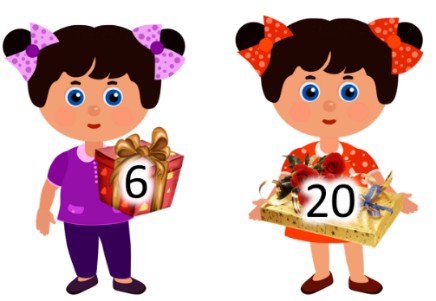 Маше и Вике подарили конфеты. Посмотри на рисунок и узнай, сколько конфет вместе у девочек.