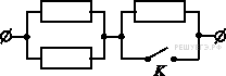 На участке цепи, изображенном на рисунке, сопротивление каждого из резисторов равно Чему равно полное сопротивление участка при замкнутом ключе К?
